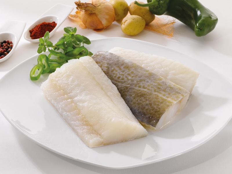 Delicioso bacalao con piel seleccionado de la parte central, prácticamente sin espinas y en su punto de sal.